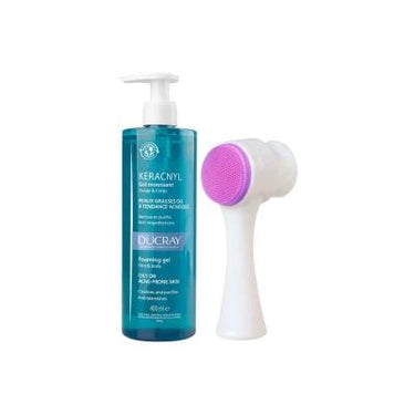 Ducray Keracnyl Acne Treatment Foaming Gel 400ml with Cleansing Brush for Oily Skin