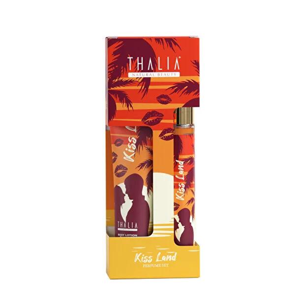Indulge in the luxurious Thalia Kiss Land Set, a perfect harmony of fragrance and skincare. This exquisite set includes a 35 ml Eau De Parfum and a 50 ml Body Lotion, designed to provide a long-lasting scent and intense moisturization.