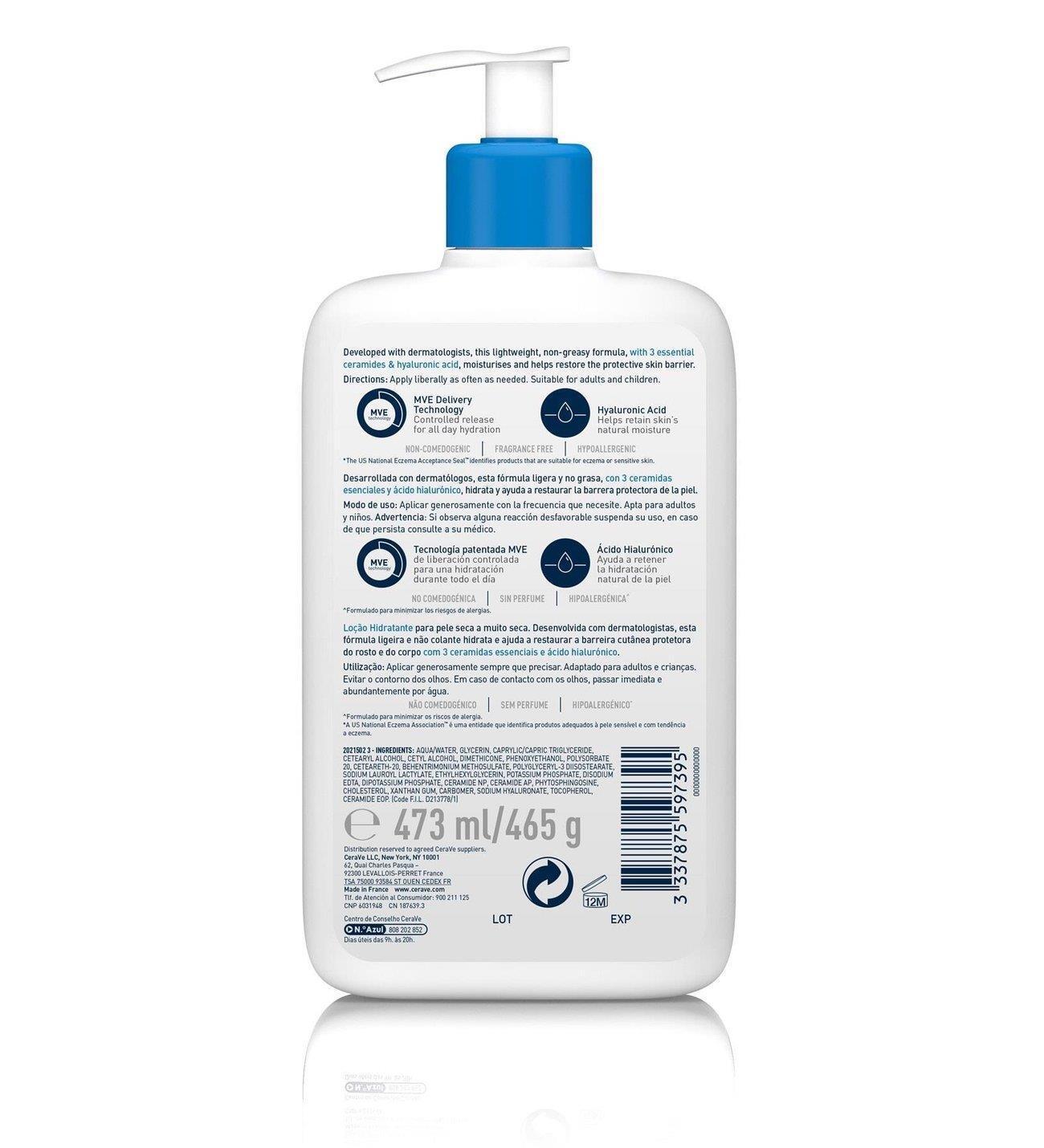 CeraVe Moisturizing Lotion 16.01 fl oz - Fragrance-Free, Hyaluronic Acid & Ceramide Rich for Dry Skin
