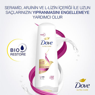Long hair requires specialized care, and Dove Ultra Care Long Hair Therapy Conditioner is specifically formulated to meet those needs. The Bio-Restore complex along with Seramid, Arjinin and L-lizim help strengthen hair and address damage to reduce split end and improve shine. More specifically: