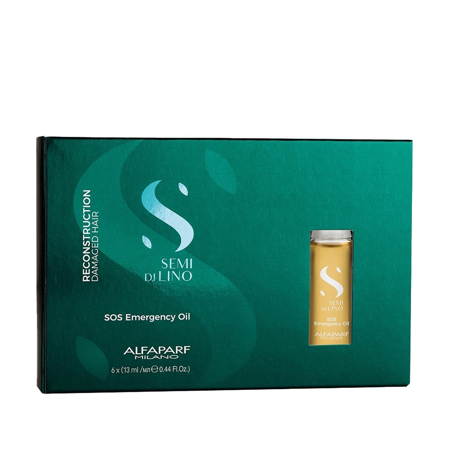Alfaparf Semi Di Lino Reconstruction SOS Emergency Oil Hair Serum - Intensive Repair for Damaged Hair, 6x13ml